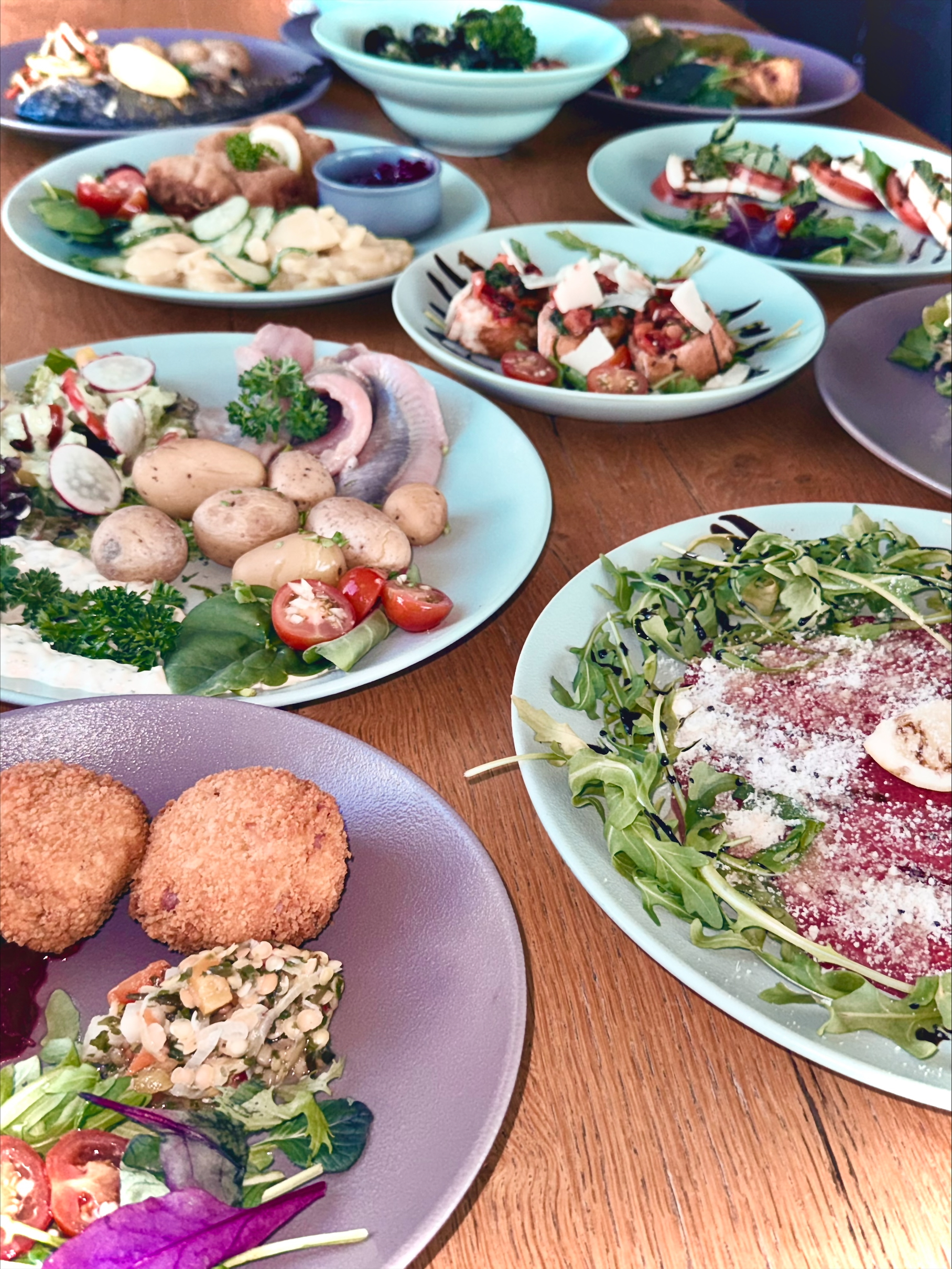 9,90 €Frische saisonale Blattsalate, Gurken, Tomaten, Karotten, hausgemachtes Dressing