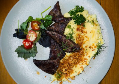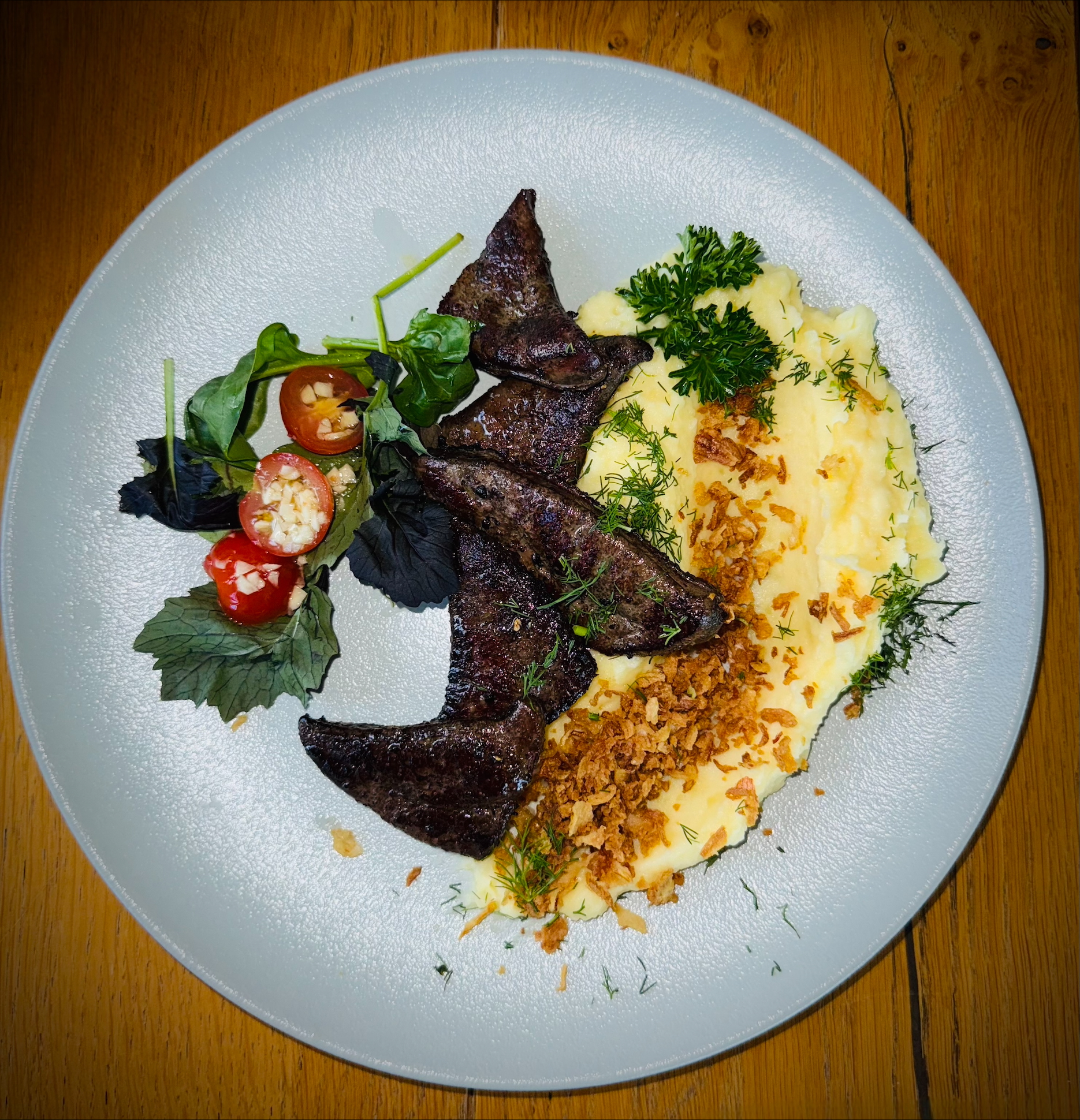 18,90 €Deftig gebratene Kalbsleber mit Röstzwiebeln und Kartoffelpüree