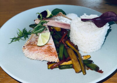 23,50 €Gebraten mit frischem Pfannengemüse, dazu kleine Drillingskartoffeln