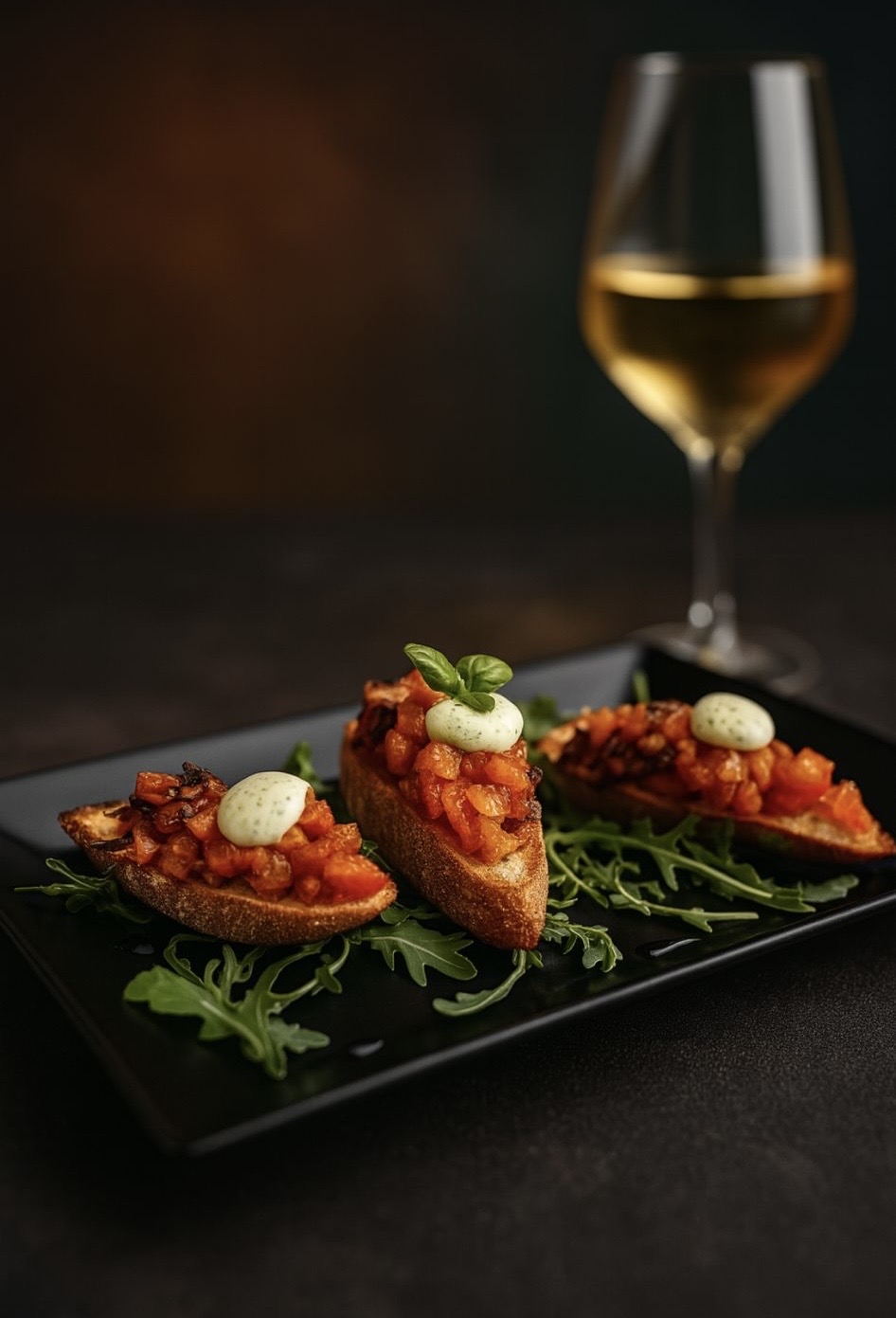 7,90 € mit Tomatenstückchen, Olivenöl, Sahne – mit Baguette